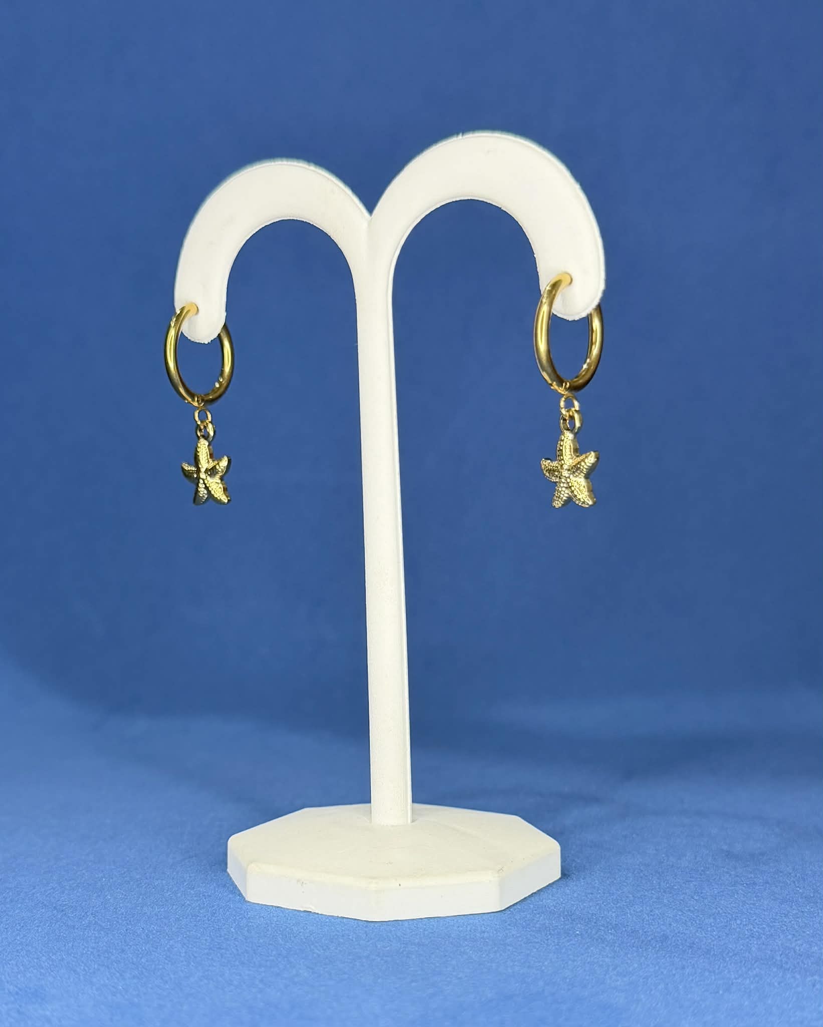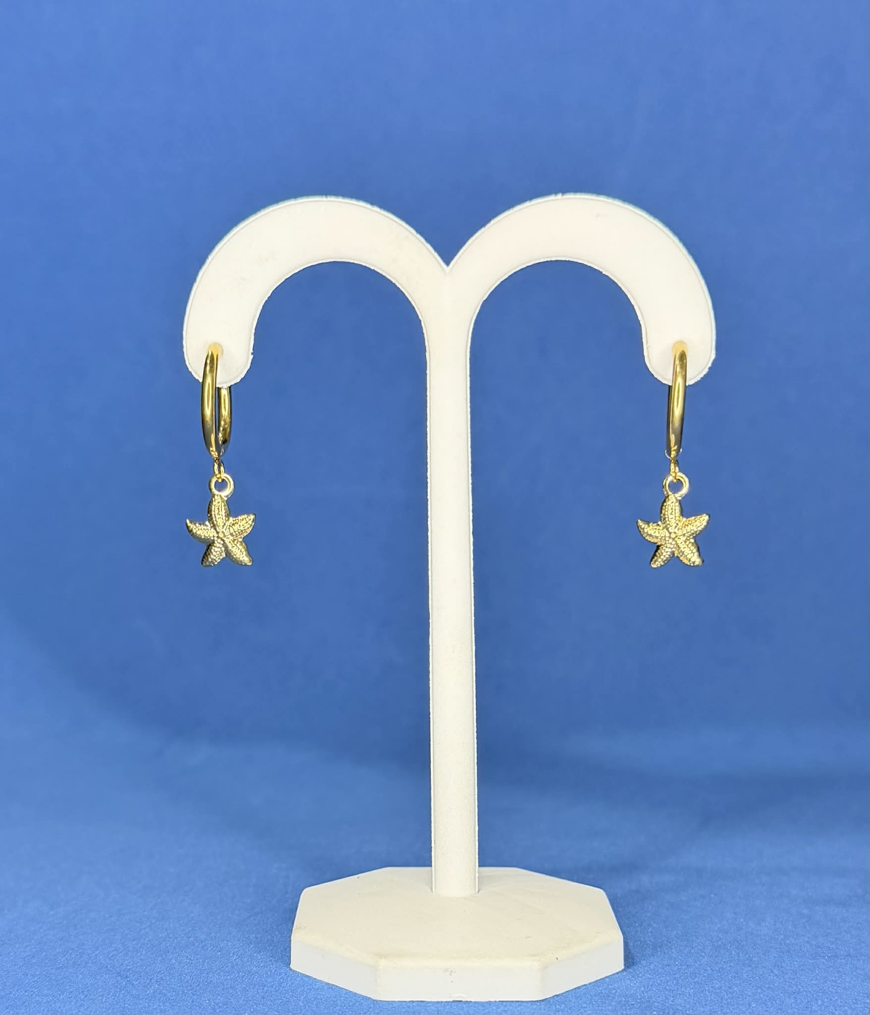 The textured starfish charm adds subtle detail, making these hoops perfect for everyday wear while still bringing a refined coastal touch to any outfit.