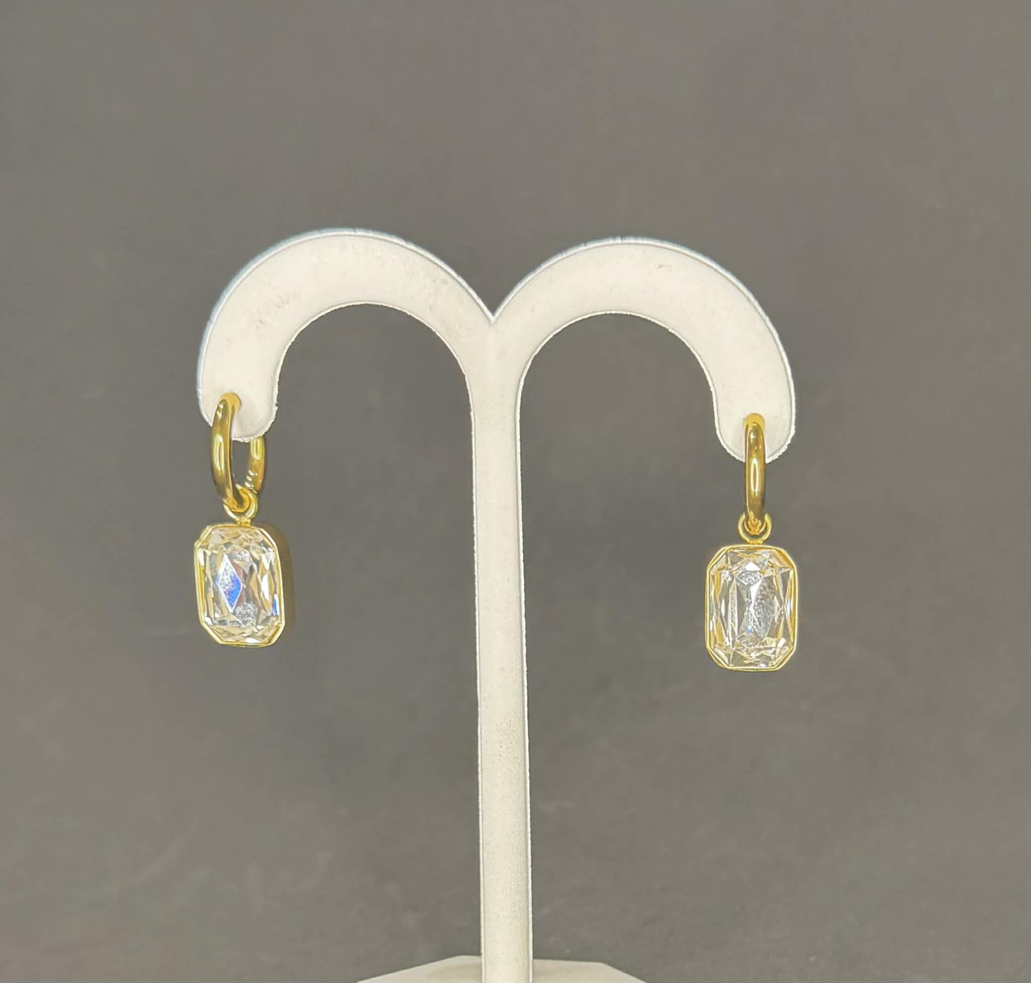 - Stainless Steel IP Gold Emerald-Cut Glass Stone Hoop Earrings