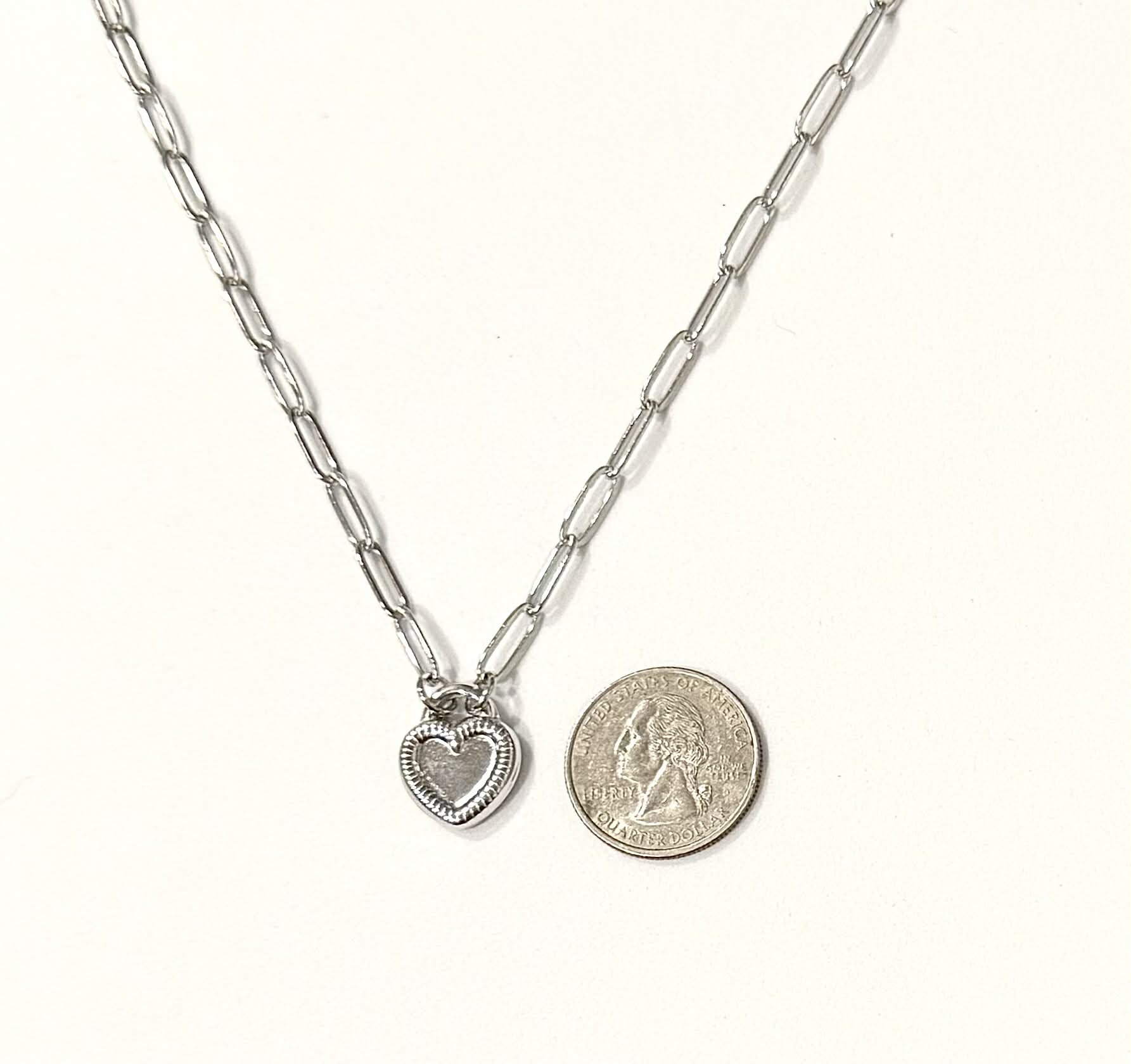 Stainless Steel Silver Color Heart Necklace With Paperclip Chain