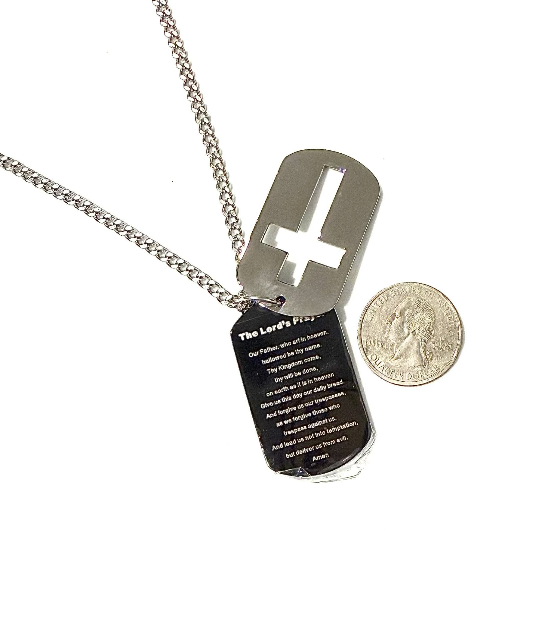- Stainless Steel Lord's Prayer Dog Tag Necklace