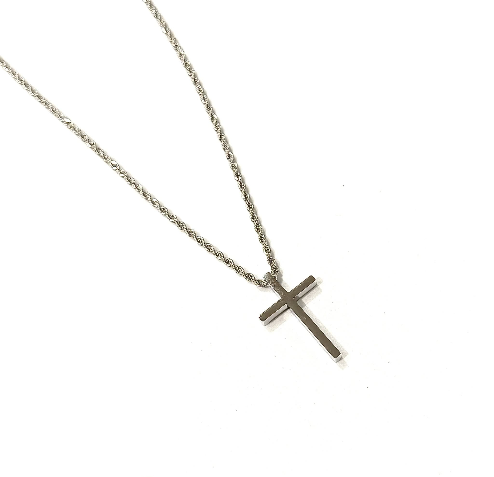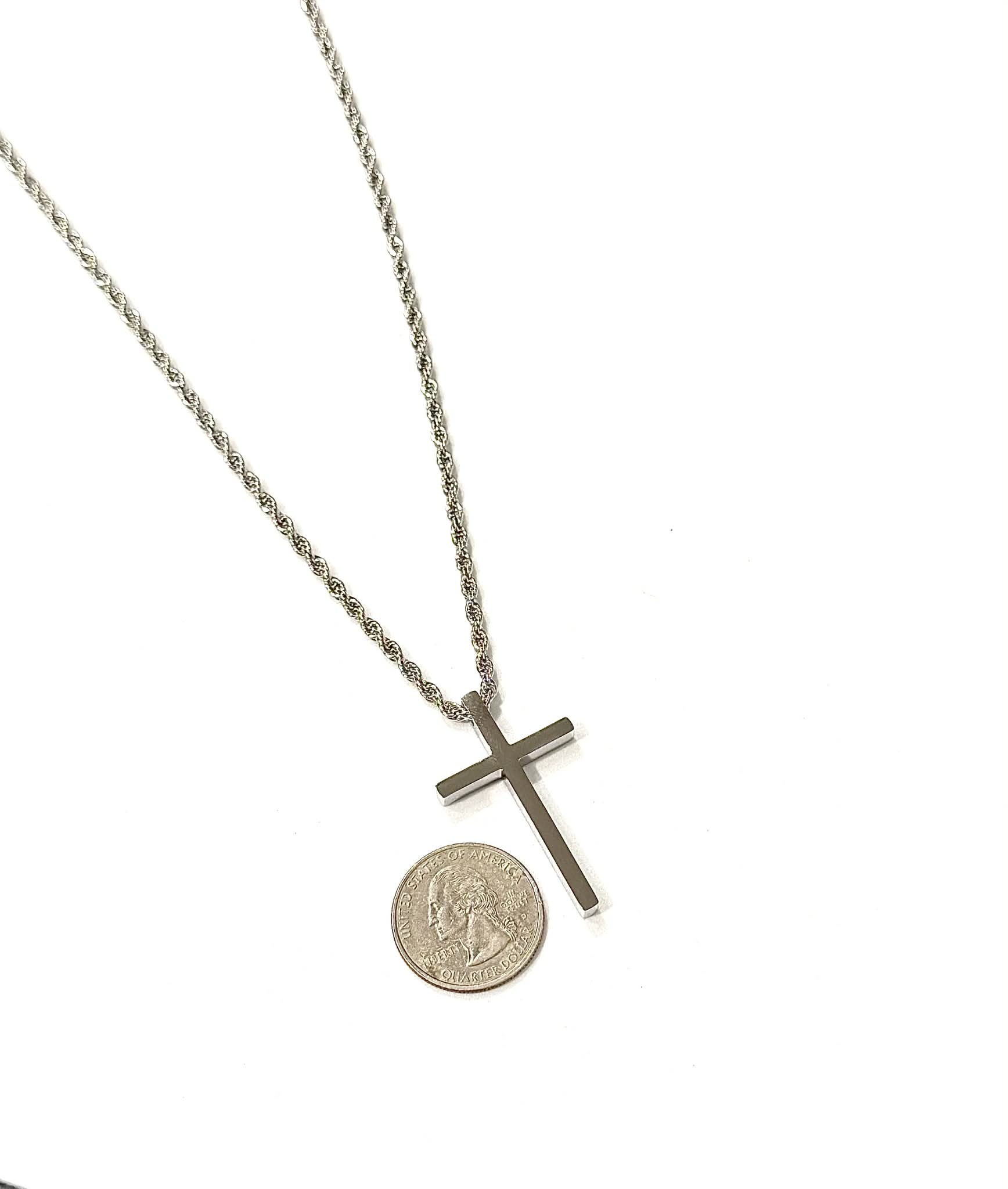 This simple stainless steel cross necklace features a classic polished cross paired with a durable 24-inch rope chain. Crafted from high-quality stainless steel, it’s tarnish-free and designed for everyday wear. The 3mm rope chain adds subtle strength and texture, making this piece a timeless expression of faith that can be worn alone or layered.